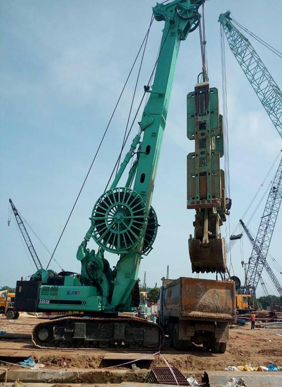 Excavation of Diaphragm wall by using Grab fitted to hydraulic rig